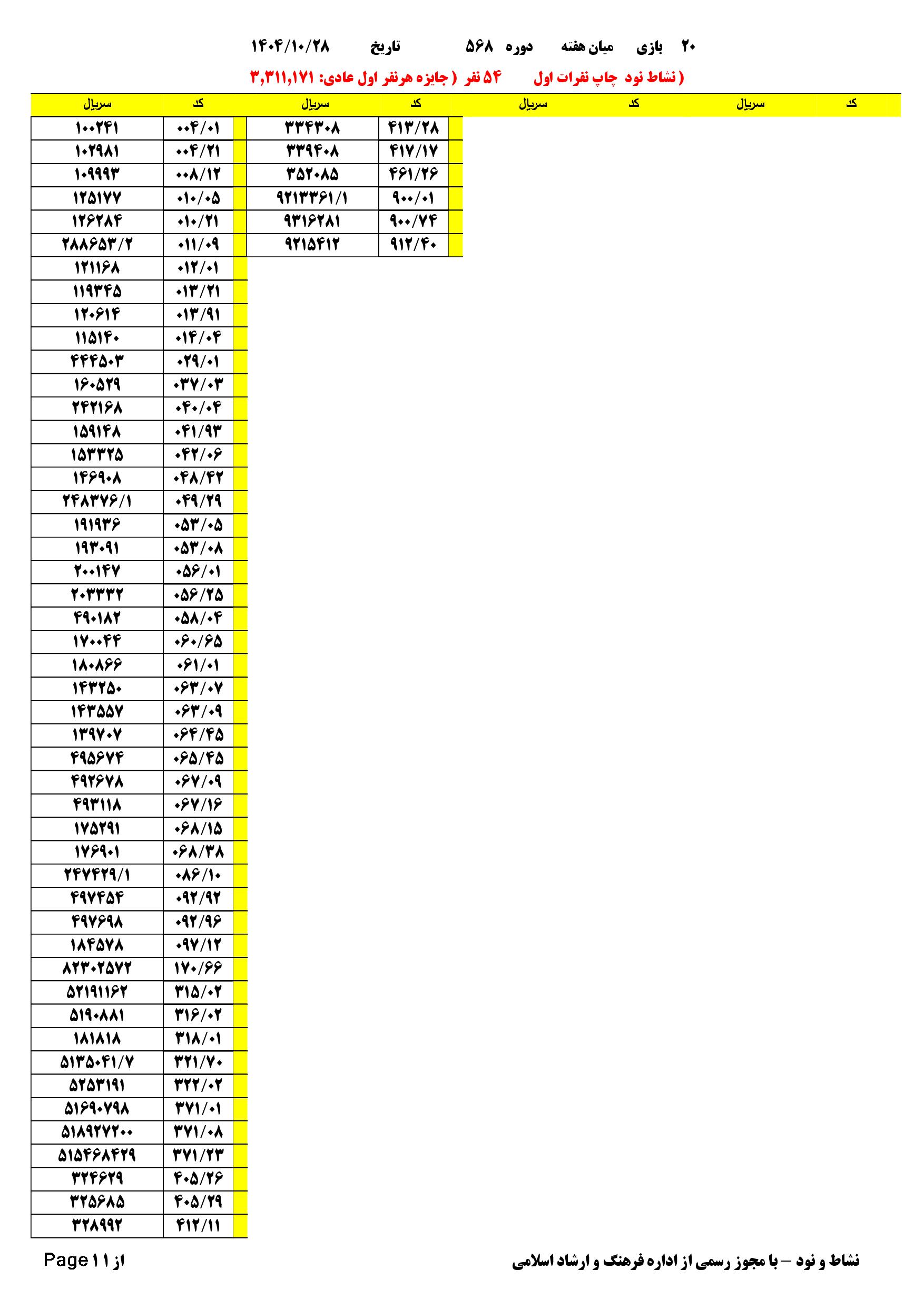 | تعدادبرگه.های.یک.خطا | 66 | مبلغ.هدیه نفرات.اول | 3.717.730 |