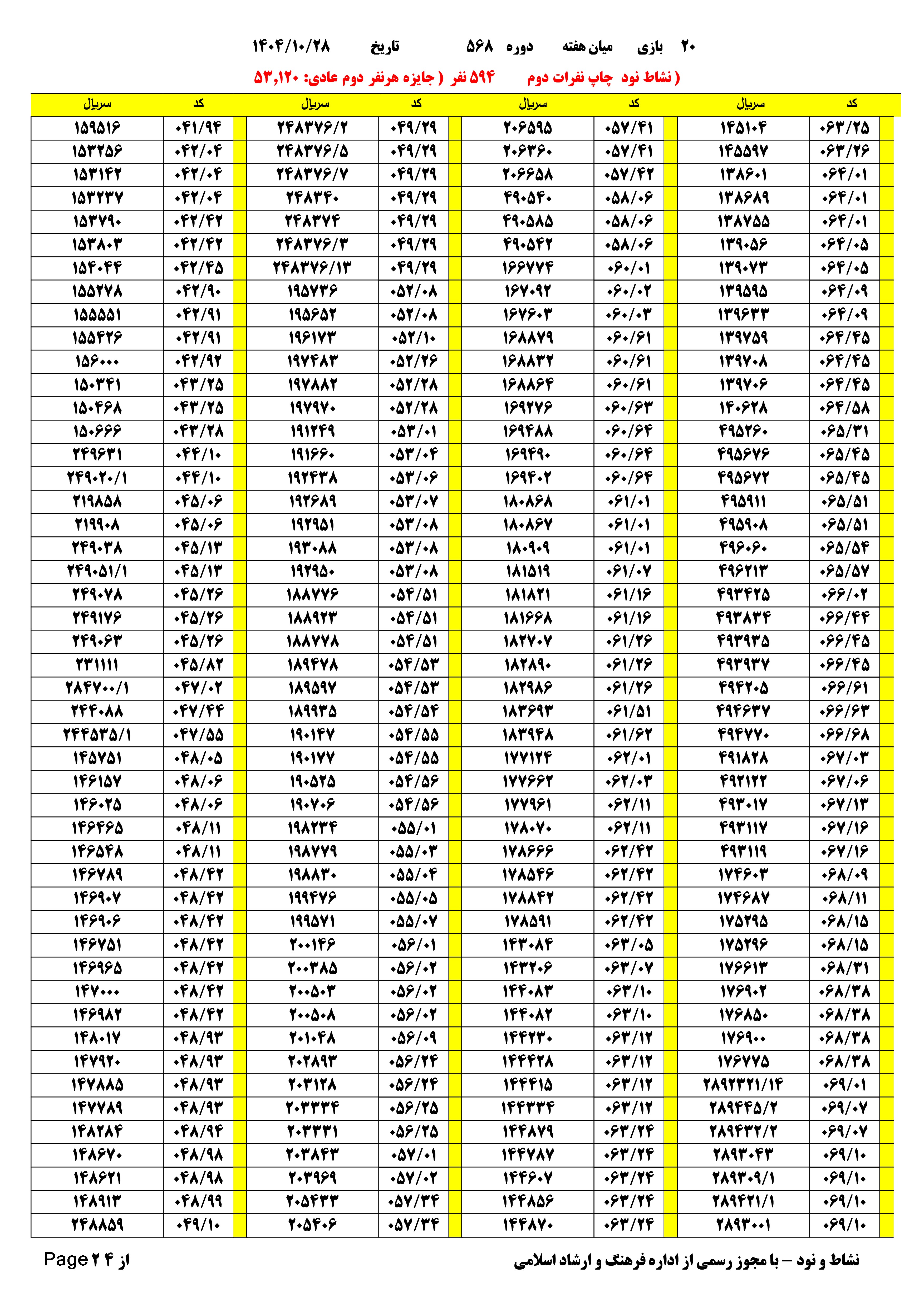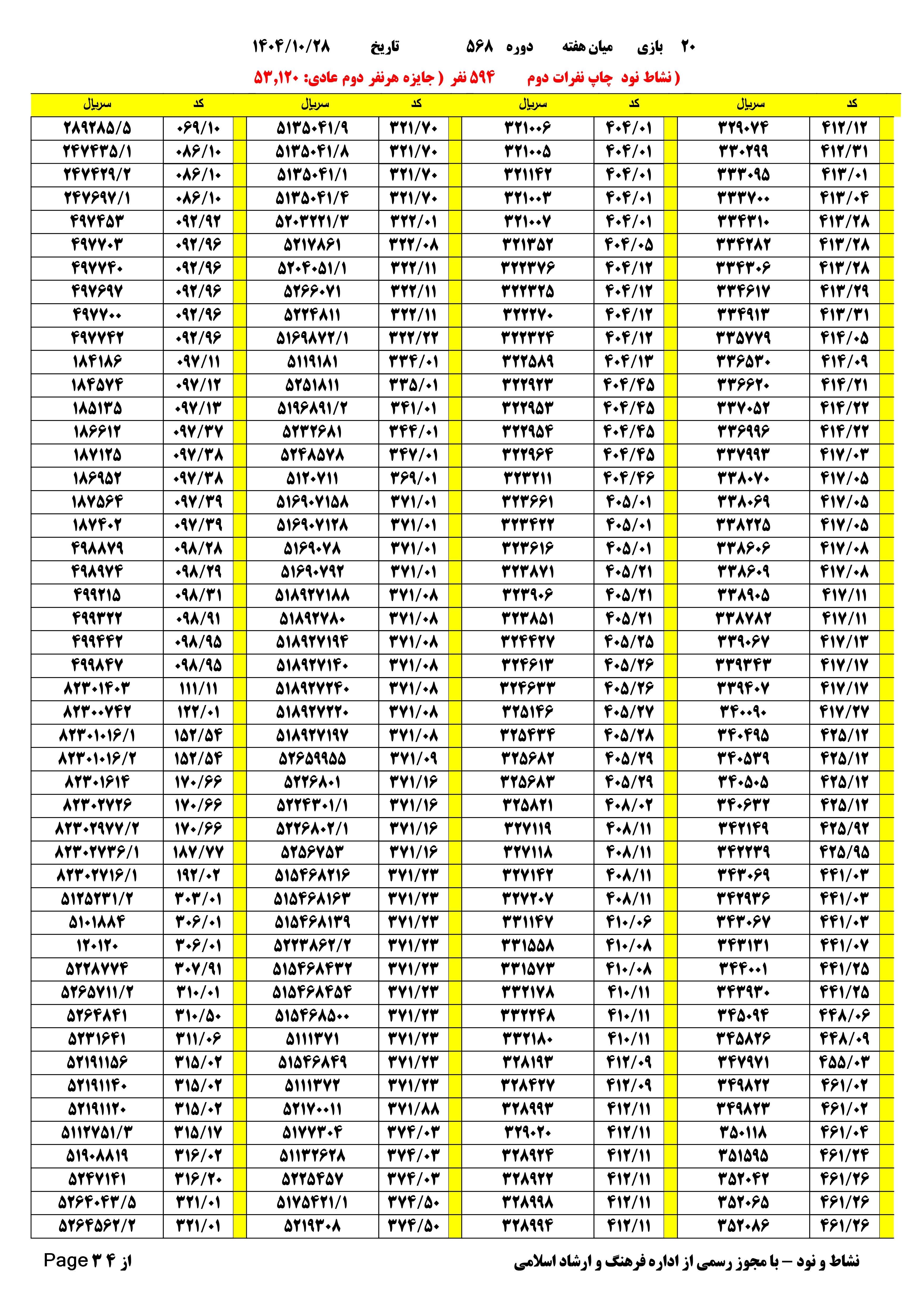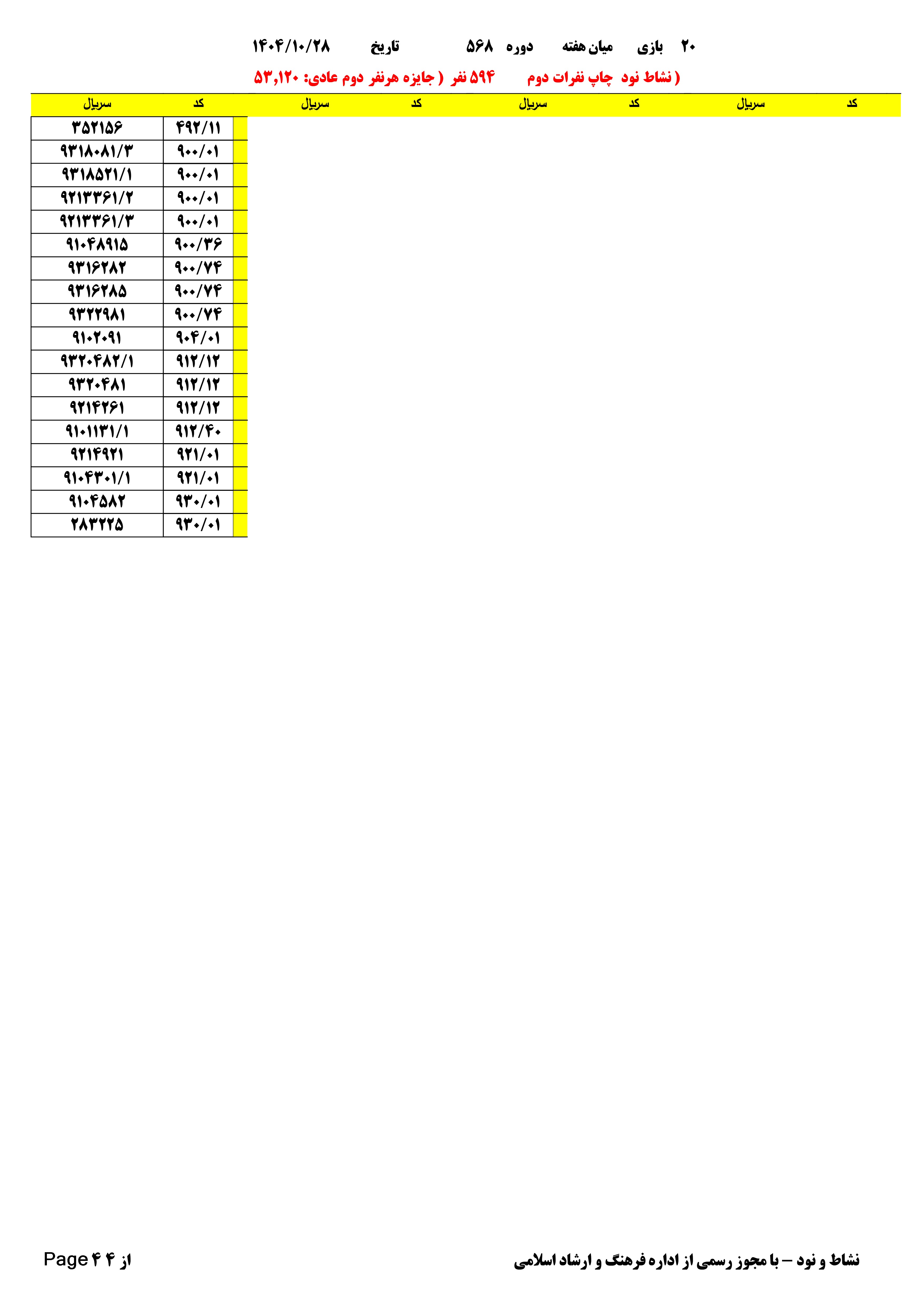 | تعدادبرگه های یک خطا | 594 | مبلغ.هدیه.نفرات.دوم | 53.120 |
