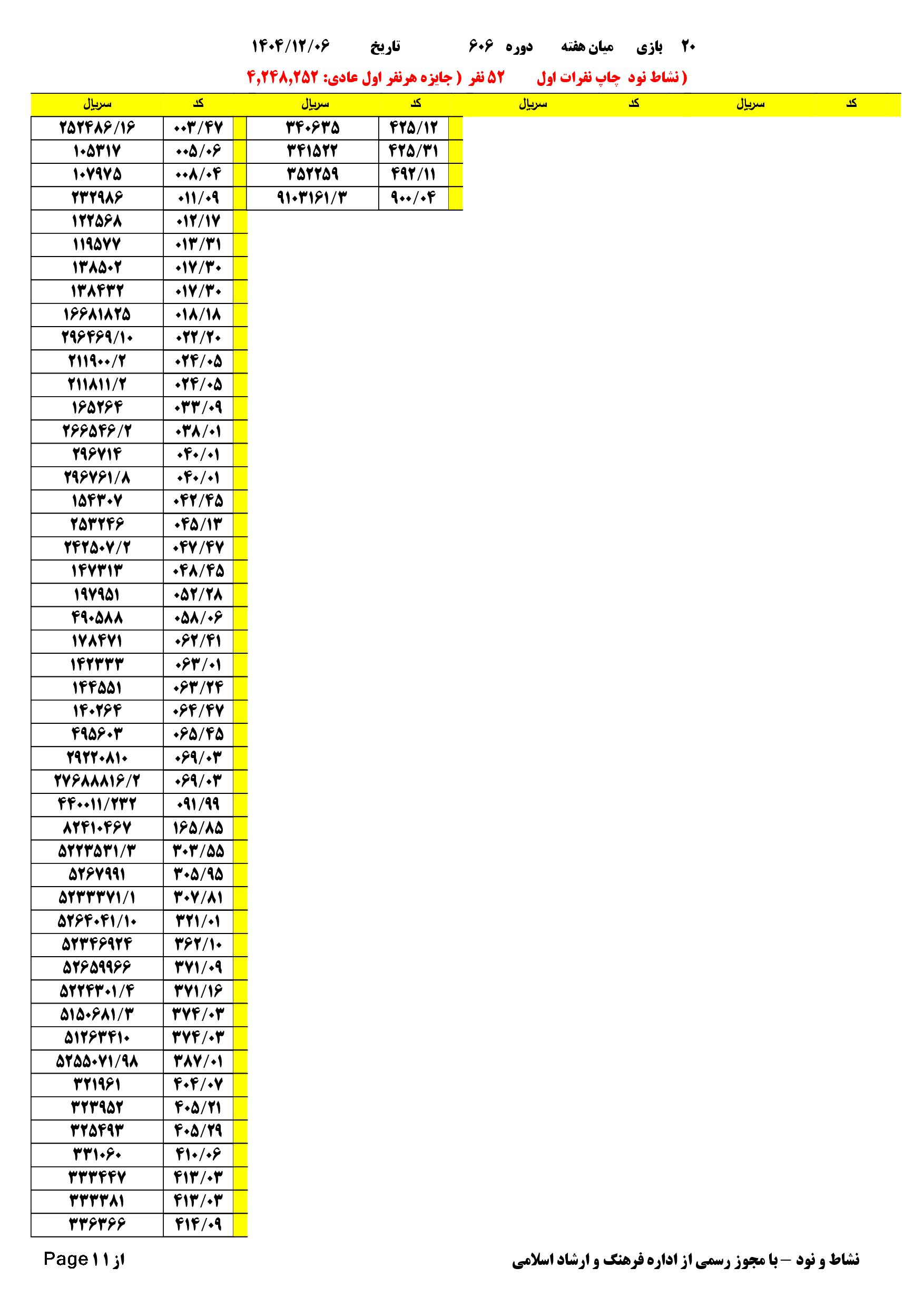 | تعدادبرگه.های.بی.خطا | 52 | مبلغ.هدیه نفرات.اول | 4.248.252 |