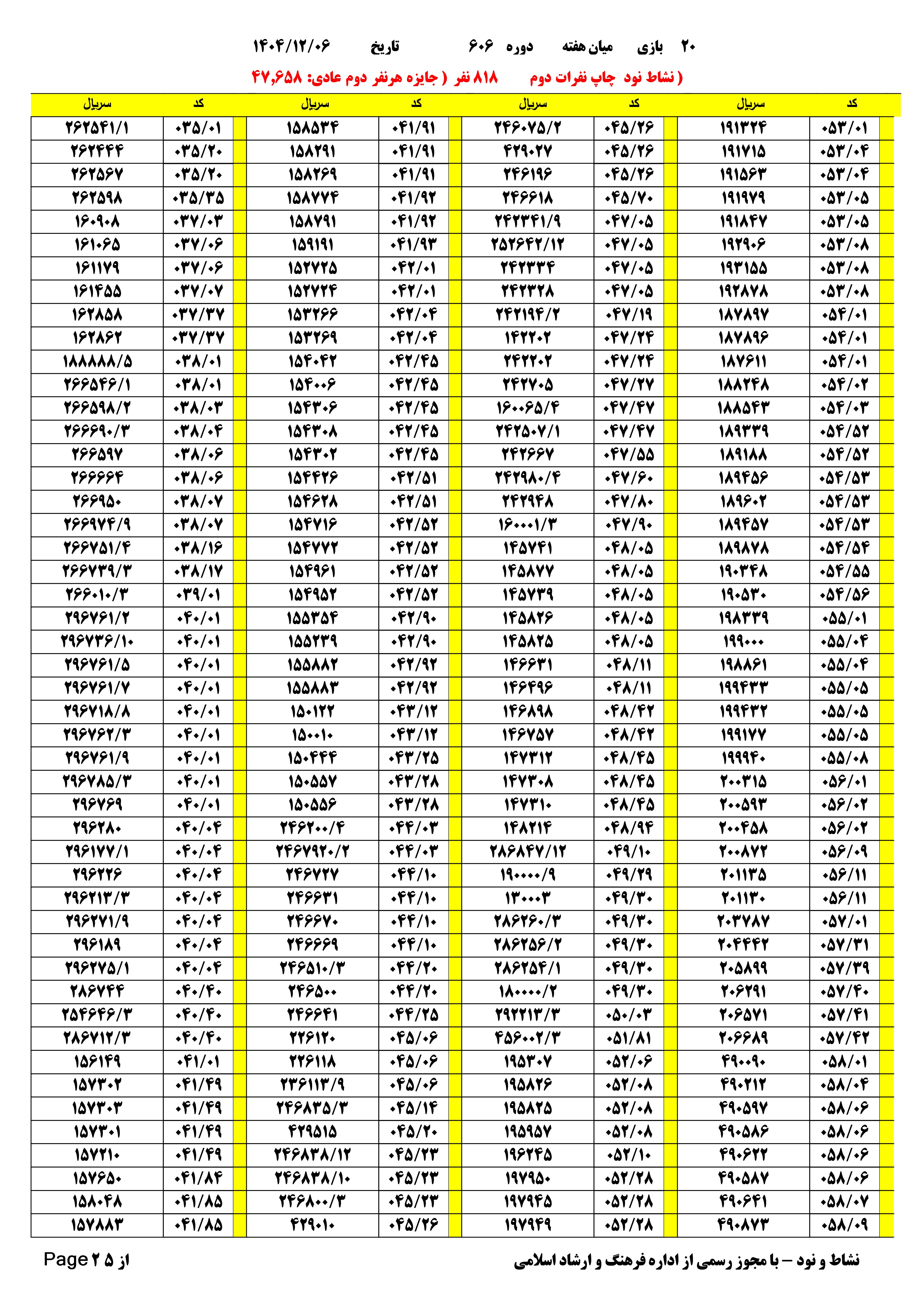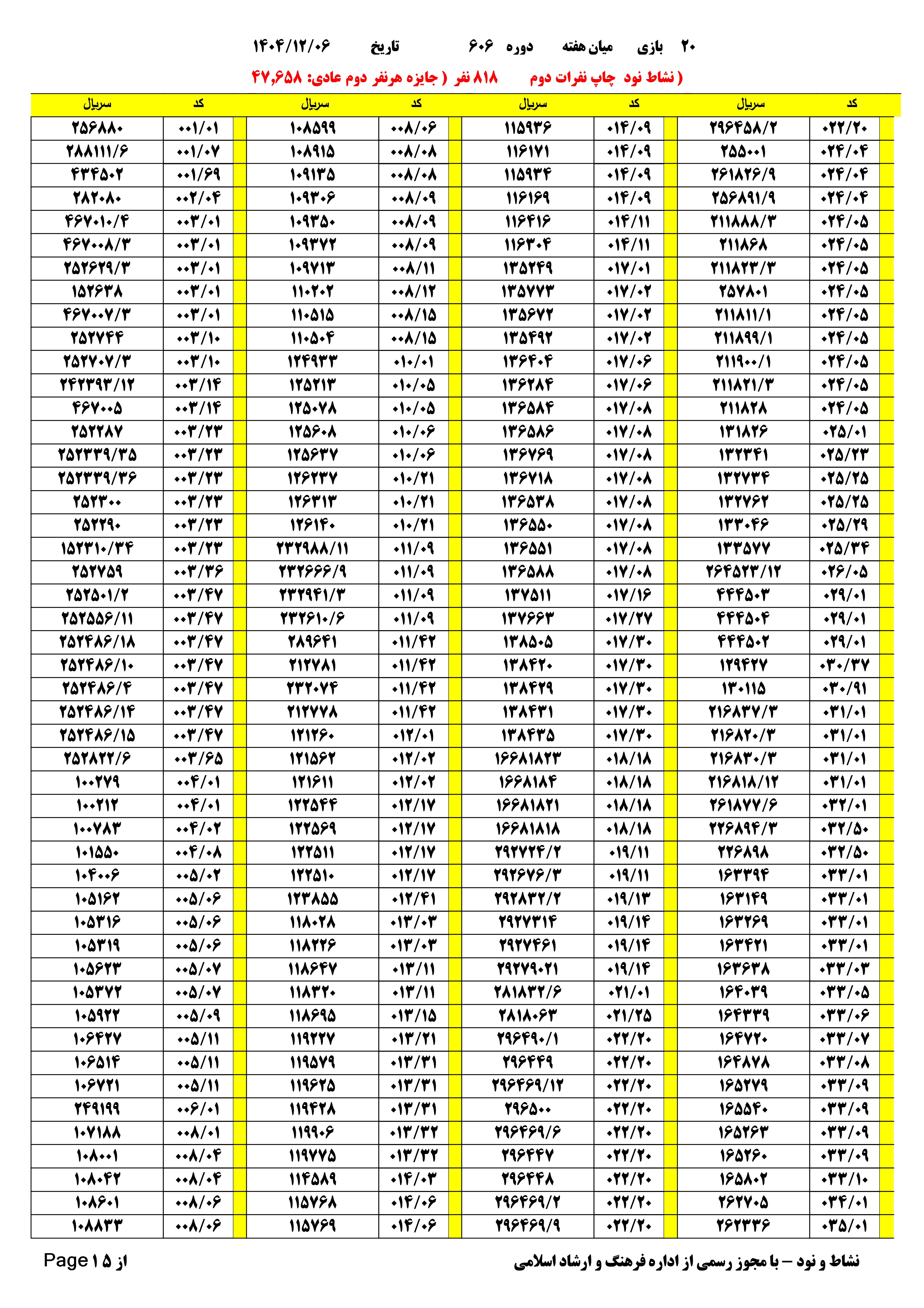 | تعدادبرگه های یک خطا | 818 | مبلغ.هدیه.نفرات.دوم | 47.658 |
