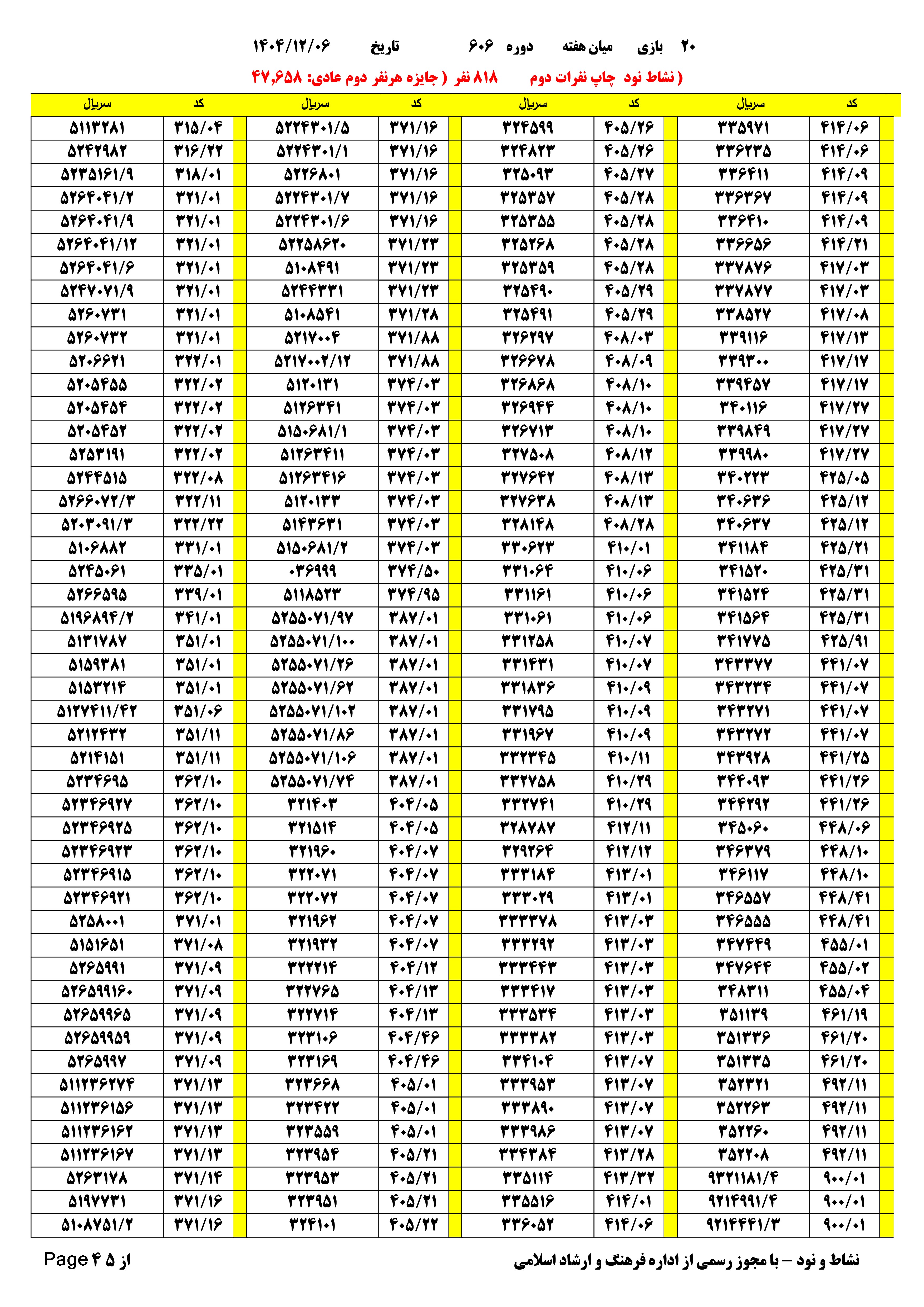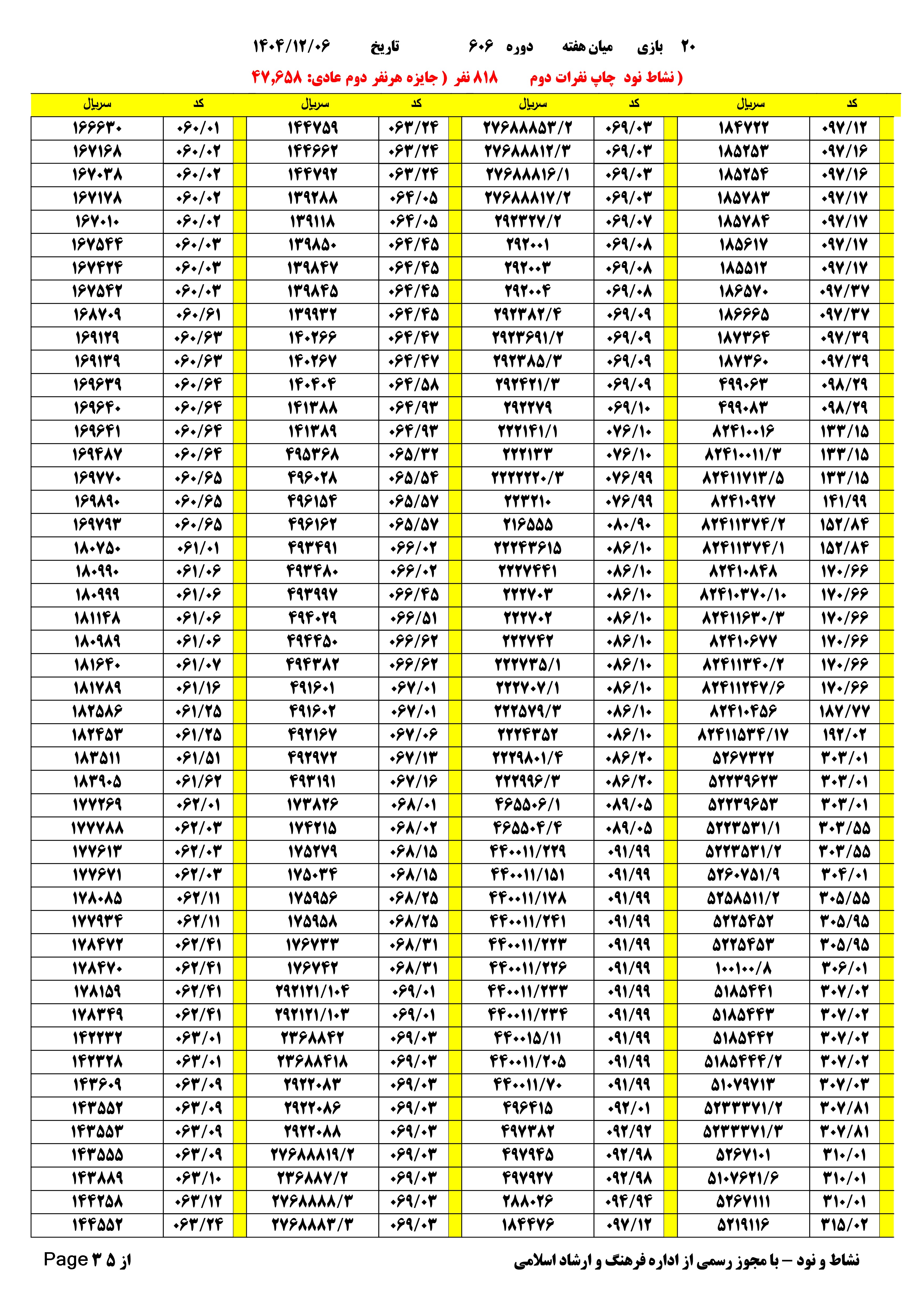 | تعدادبرگه های دو خطا | 341 | مبلغ.هدیه.نفرات.دوم | 118.746 |