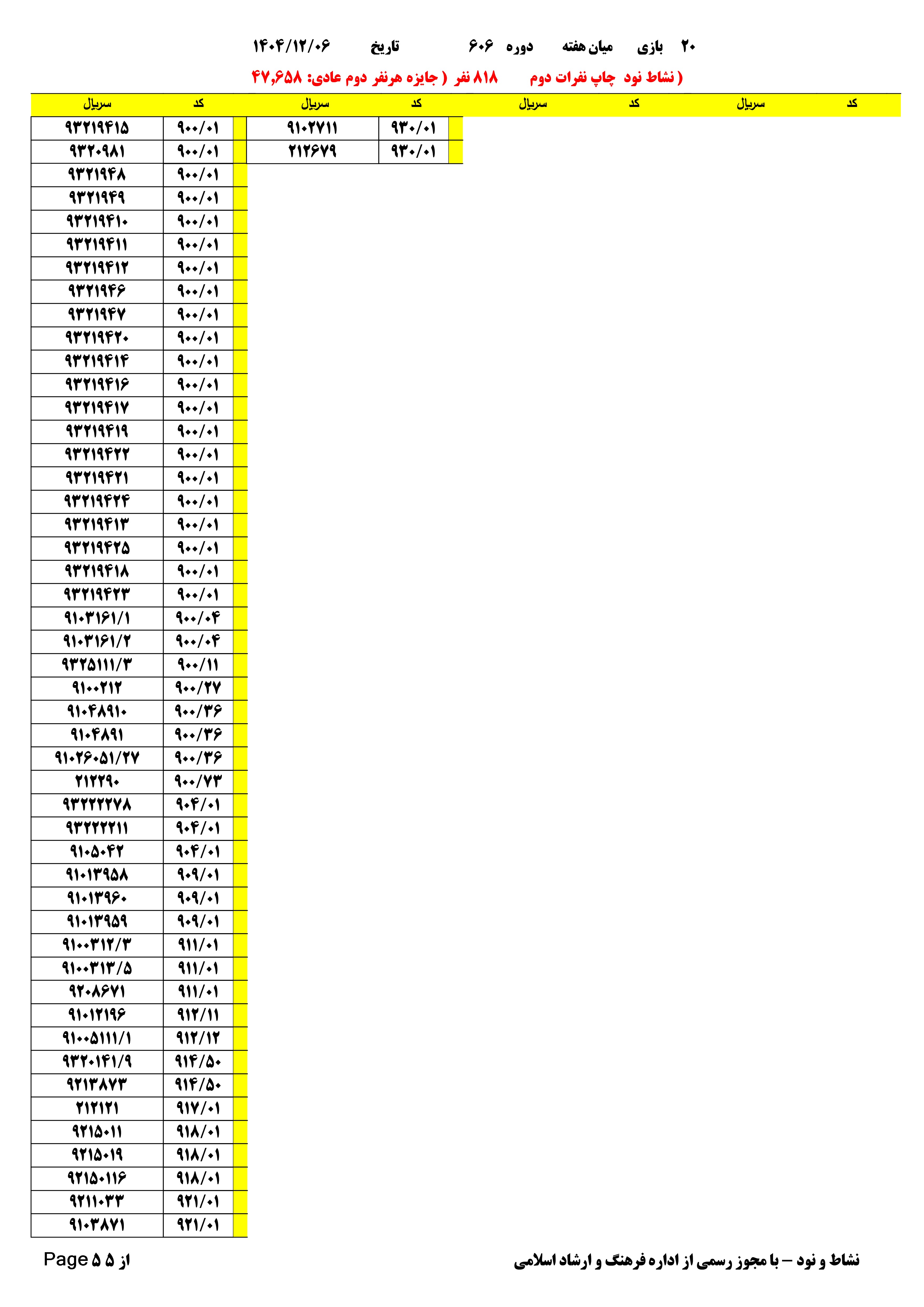 | تعدادبرگه.های.یک.خطا | 33 | مبلغ.هدیه نفرات.اول | 6.017.654 |