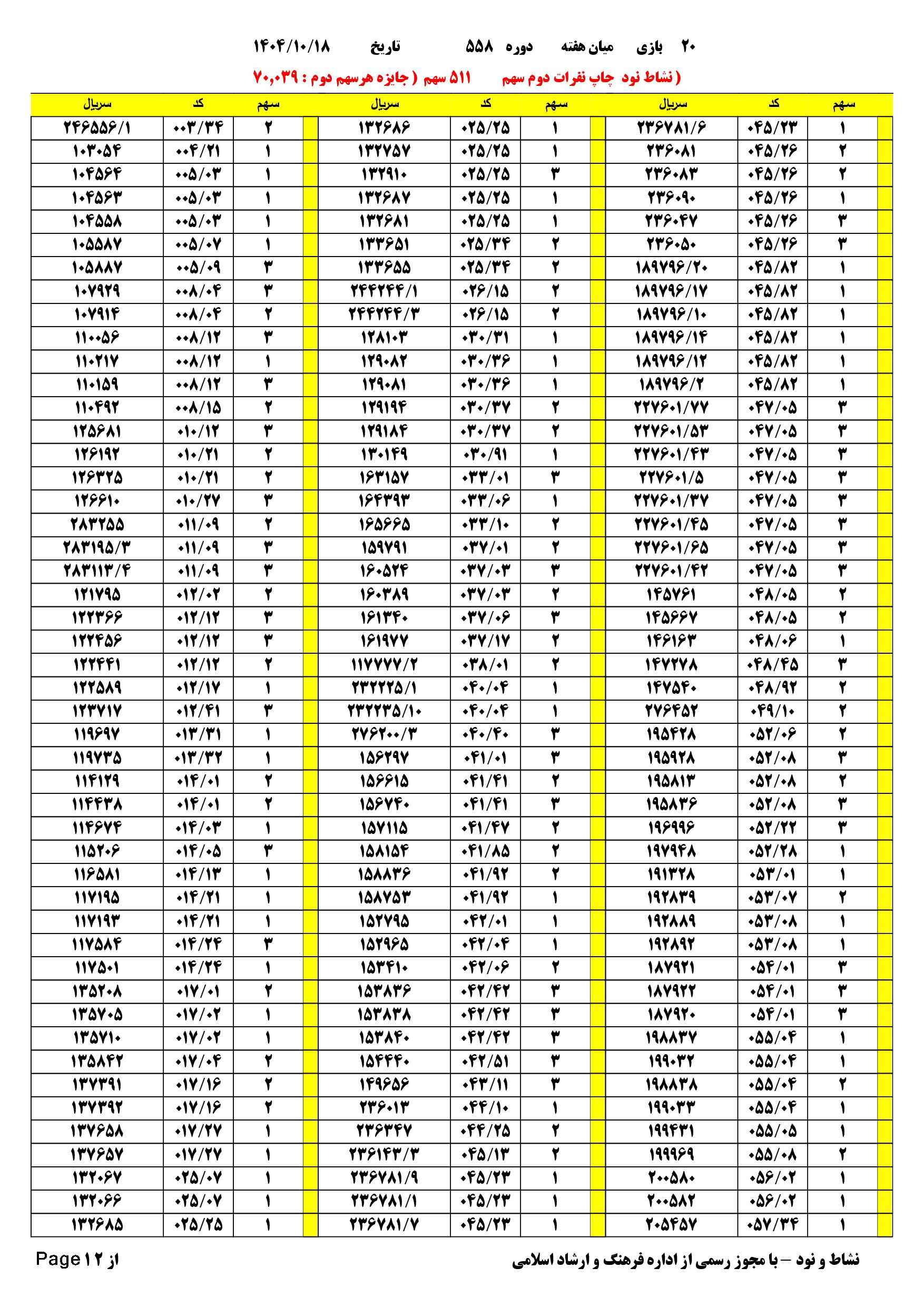تعدادبرگه های دو خطا | 282 فرم 511 سهم | مبلغ.هدیه.نفرات.دوم سهم | 70.039 |